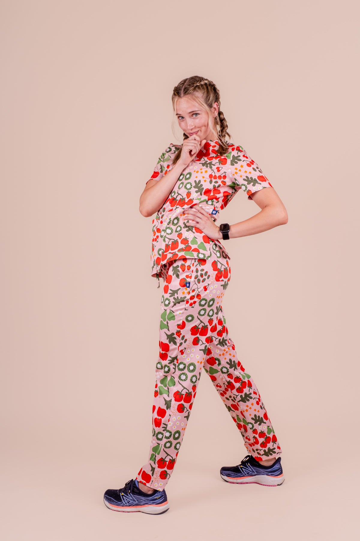 Featuring a fruity, festive design by artist Elke Gill, it brings vibrant red and green hues to your scrubs without the usual holiday clichés—perfect for year-round wear, especially #funscrubfriday. Elke’s playful artwork adds a cheerful, fresh twist to your holiday style, making it easy to spread festive joy at work.
